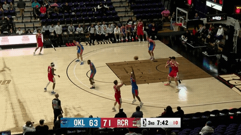 在NBA中,杨瀚森所面对的防守则是像下面这个回合的,都不说运球了,一个转身,包夹就来了:
