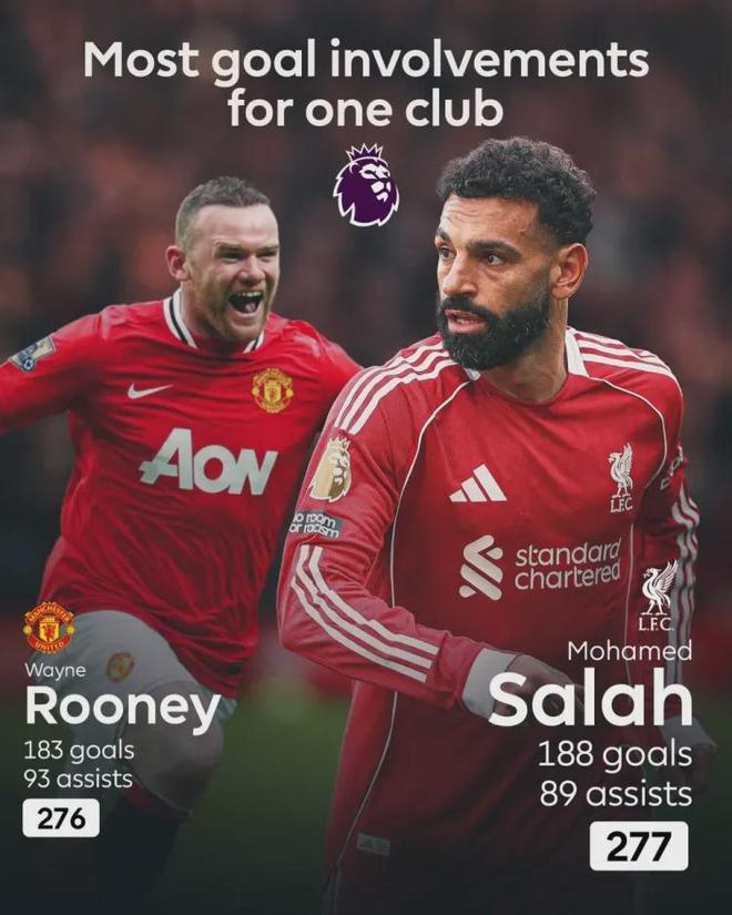 一、46秒闪击,胜利却带着裂痕 开场仅46秒,22岁的法国前锋埃基蒂克抽射破门,点燃了安菲尔德。第60分钟,萨拉赫开出角球,埃基蒂克头球梅开二度——这是萨拉赫利物浦生涯第89次助攻,加上188个进球,他以277次参与进球的数据,超越鲁尼,成为英超历史“单一俱乐部参与进球之王”。